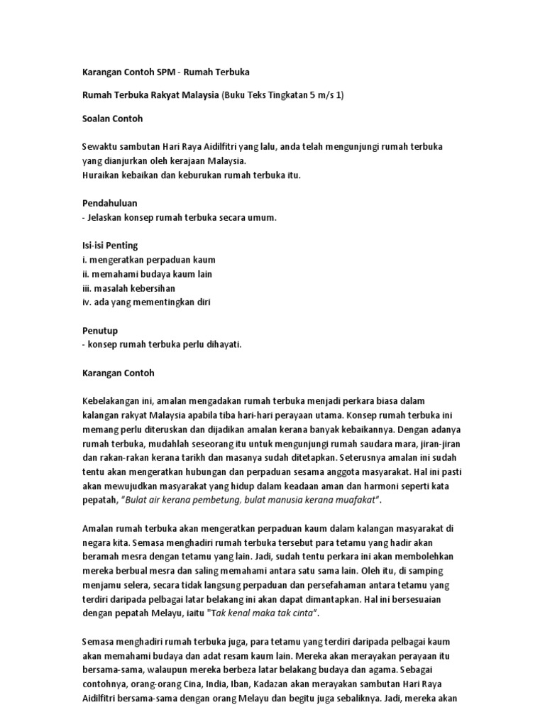 Doc Karangan Contoh Spm Rumah Terbuka Firdaus Zukrie Academia Edu