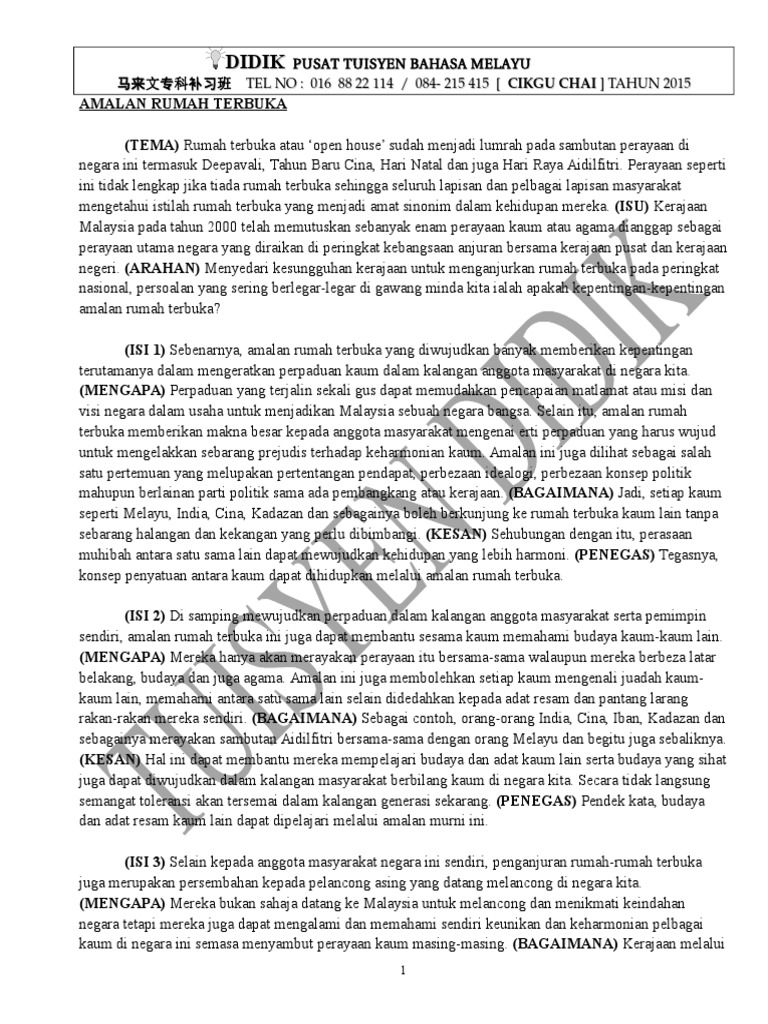 Doc Karangan Cemerlang Spm Kebaikan Amalan Rumah Terbuka Najat Ruhi Academia Edu